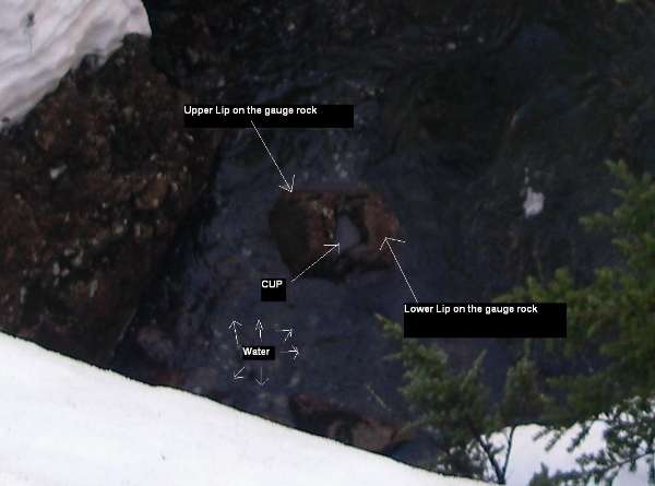 | This would be a pretty low run. The cup is about 6 inches out of the water. When the whole rock is underwater bring your A game (and a rope for the Fisherman ;). |